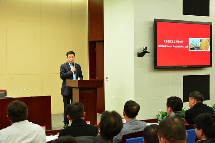 随后,北新木业副总经理李建立先生介绍了公司的发展情况、木业事业以及未来的发展目标。