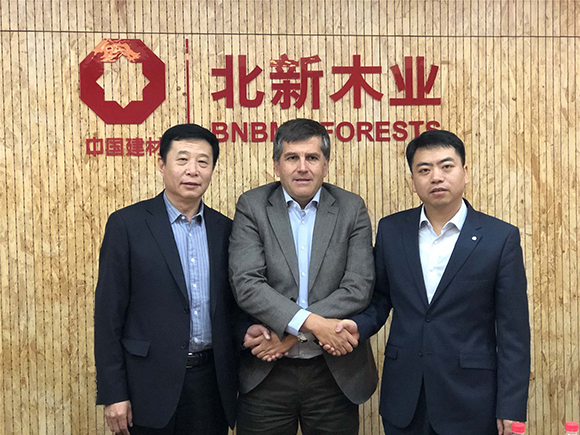 北新木业总经理王卫仁、副总经理李建立与LP集团南美公司供应链总监Claudio