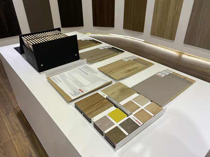 展会上,我们的明星产品欧松®BERNECK可饰面家具板和超级新品Karrisen 凯立森®可饰面产品同样备受关注。