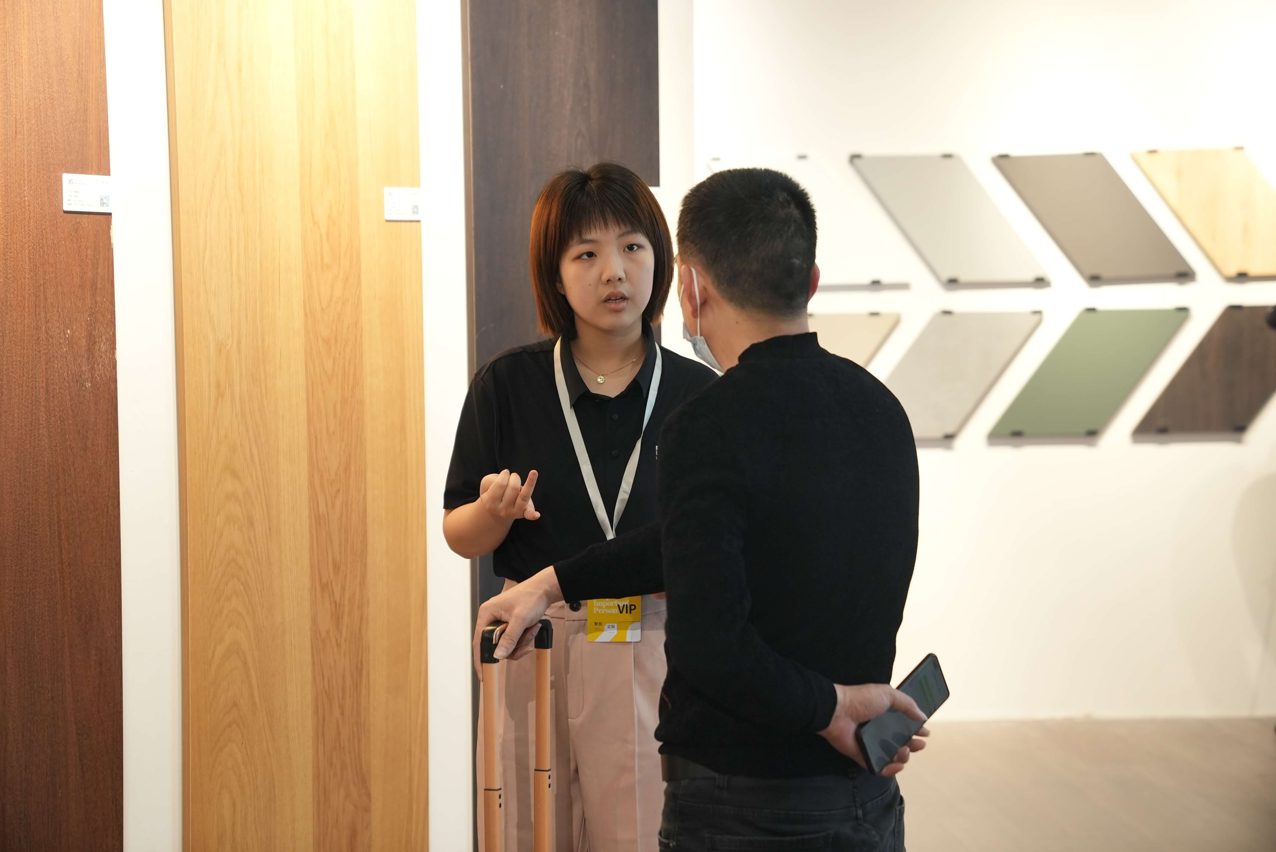 展位上参展观众比肩接踵,人气火爆,现场洽谈热火朝天。每一位北新木业的团队成员都在进行着积极的介绍与讲解,用20余年人造板材从业者的专业与经验为观众提供周到、热情的服务,在悉心听取诉求的同时,也将高品质产品体系与北新木业的品牌理念介绍给每一位参展观众。