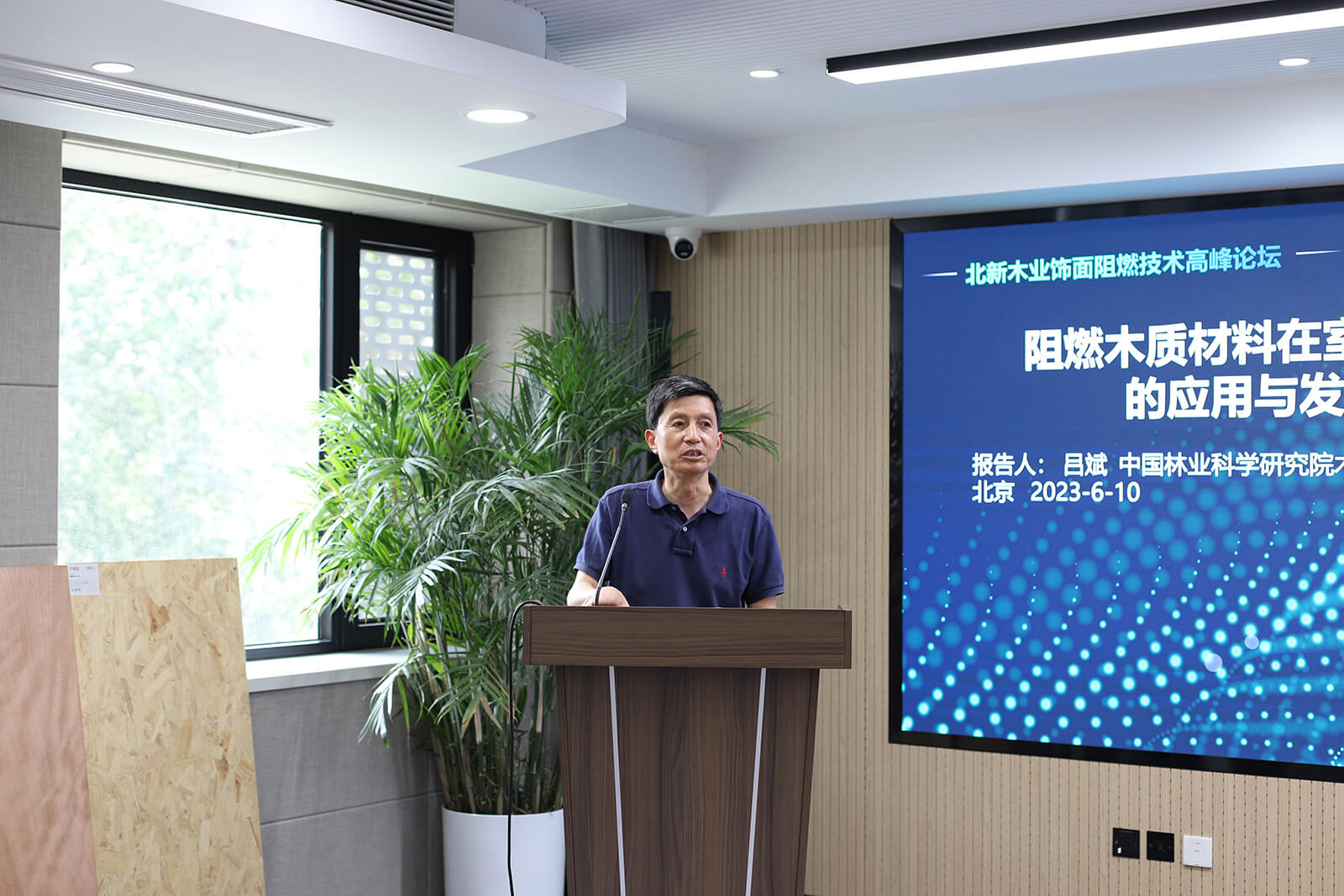 2023年6月10日下午,北新木业面层阻燃技术论坛在北新集团总部召开,北新木业总经理王卫仁,中国林科院木材工业研究所副所长、国家人造板与木竹制品质量检验检测中心主任吕斌,中国林科院木材所研究员吴玉章,北新木业人造板事业部总经理李伟、研发部总经理张方文、人造板事业部副总经理张荣、各大区经理,以及数十位来自全国各地的合作伙伴代表齐聚一堂,共话阻燃技术应用新趋势,探寻合作发展新路径。