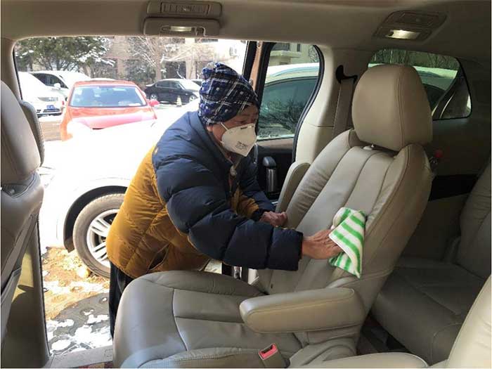“我们每天对‘专车’两次消毒,保证车内达到防疫标准。” “专车司机”刘亚兵说,“大家的防护意识和为他人着想的意识很强,都能自觉戴好口罩,做好个人防护。”